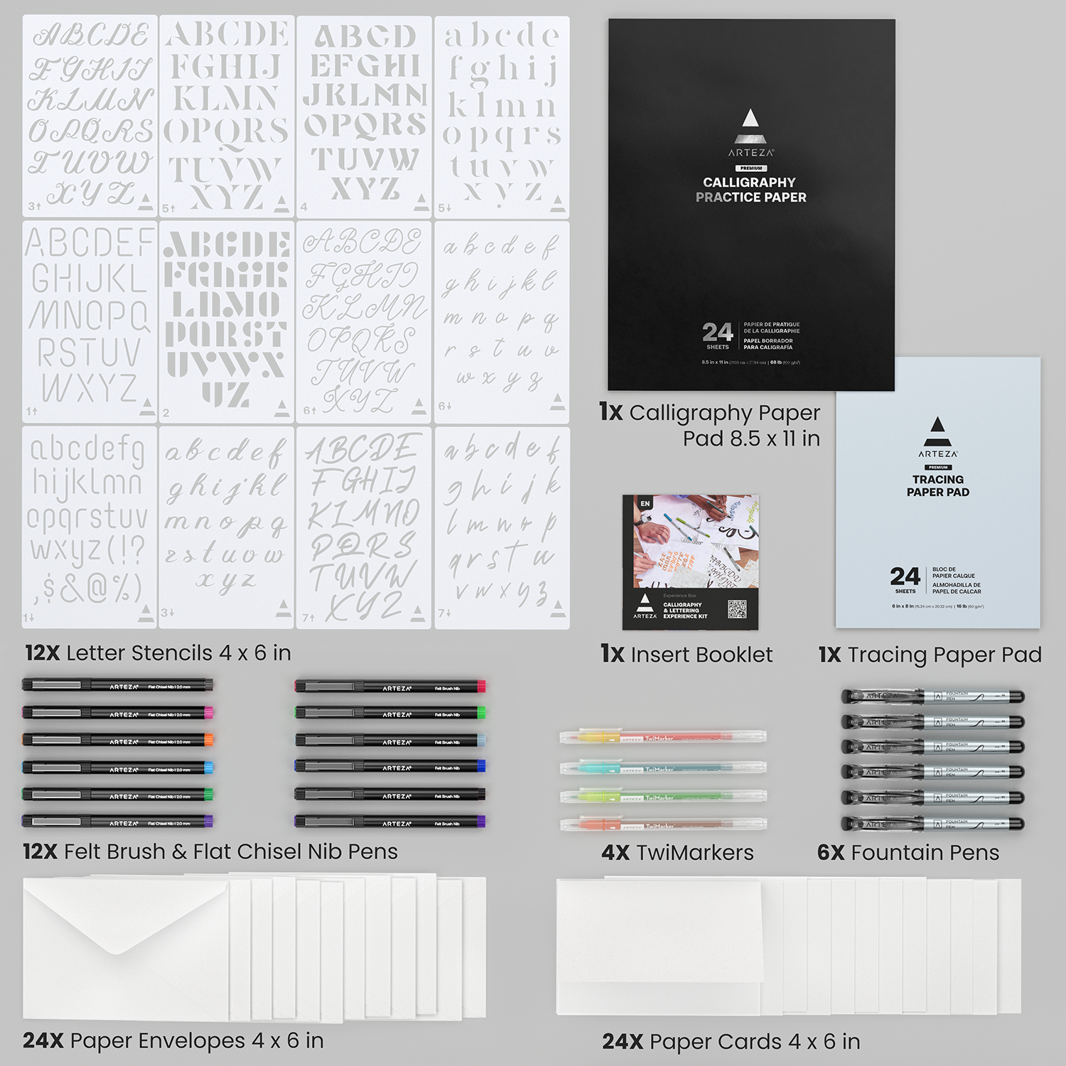 Our Calligraphy and Lettering Party Set gives you everything you need to embark on a captivating lettering adventure. Unlock your creative potential and elevate your projects to new heights. Start your lettering party today!