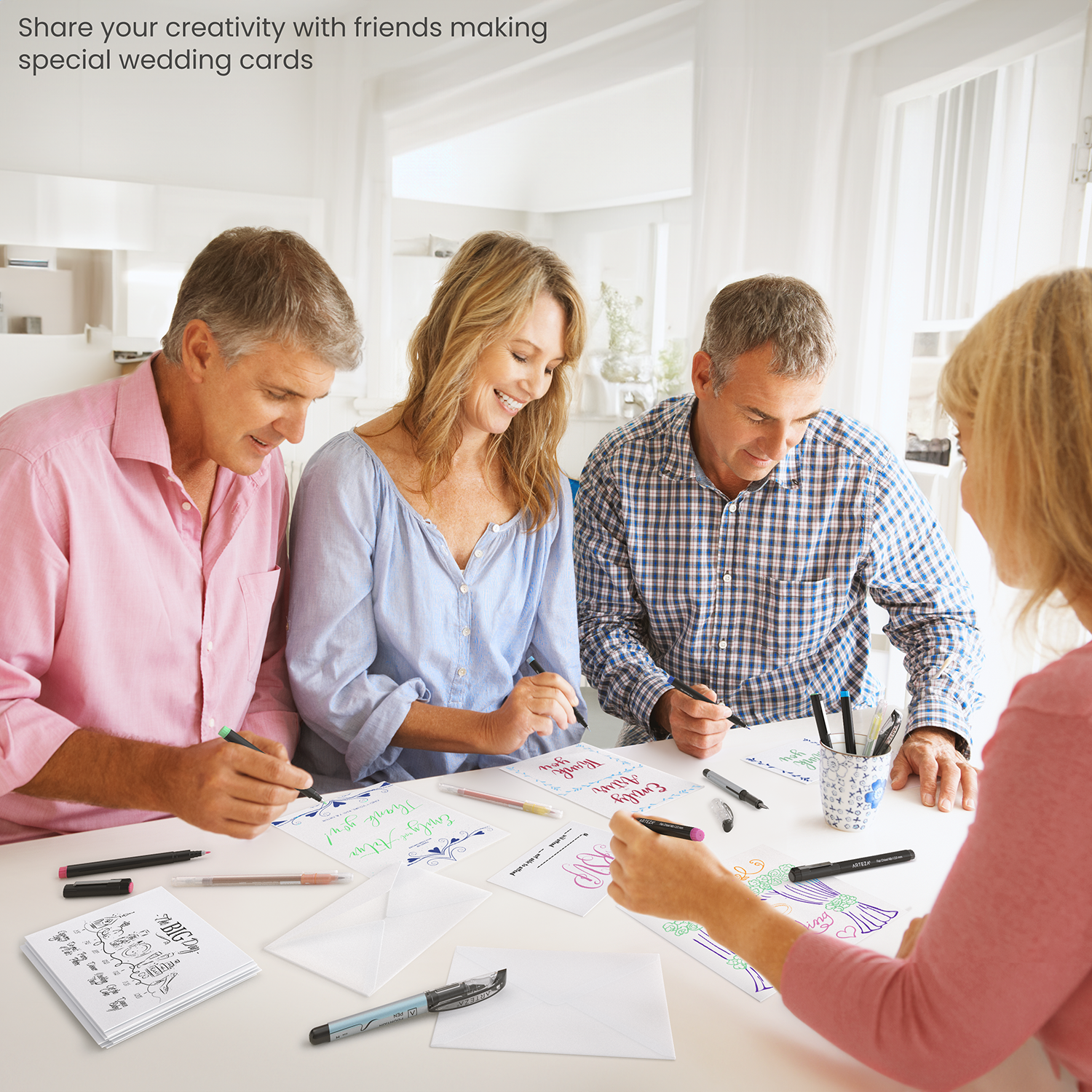 Unveil the perfect blend of creativity and convenience with our Calligraphy and Lettering Party Set. This thoughtfully curated set includes an array of essential tools to elevate your lettering journey. Tailored to accommodate a group of four, this set is poised to unleash a world of creative possibilities.