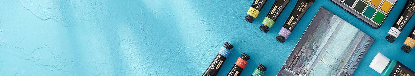 Acrylic Paints are known for being the most universal wet medium. Our acrylic paints are pigment-packed and super blendable, providing you with the ideal paint for nearly any surface imaginable; though typically artists gravitate towards stretched canvases, canvas panels, and canvas pads. Acrylic paint is beginner-friendly and an overall forgiving medium, since you can easily paint over any mistakes with more paint. Acrylic paint is truly versatile, as it can be used on its own for maximum coverage, or it can be diluted with water to create washes. Some of our most popular acrylic paint sets include our Iridescent Acrylic Paint Set of 10, Acrylic Premium Artist Paint Set of 14, Acrylic Premium Artist Paint Set of 60, and our Metallic Acrylic Artist Paint Set of 36.